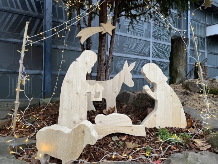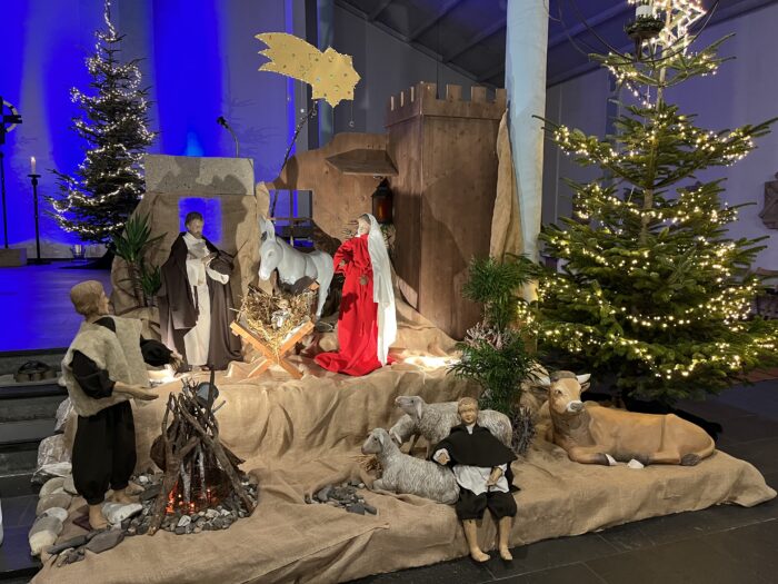 Mit der Außengrippe in bzw. vor der Christus König Kirche hat es in diesem Jahr eine Erweiterung gegeben. Die Krippe wurde vom Familienkreis gestaltet.