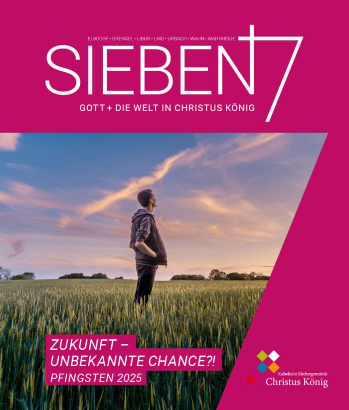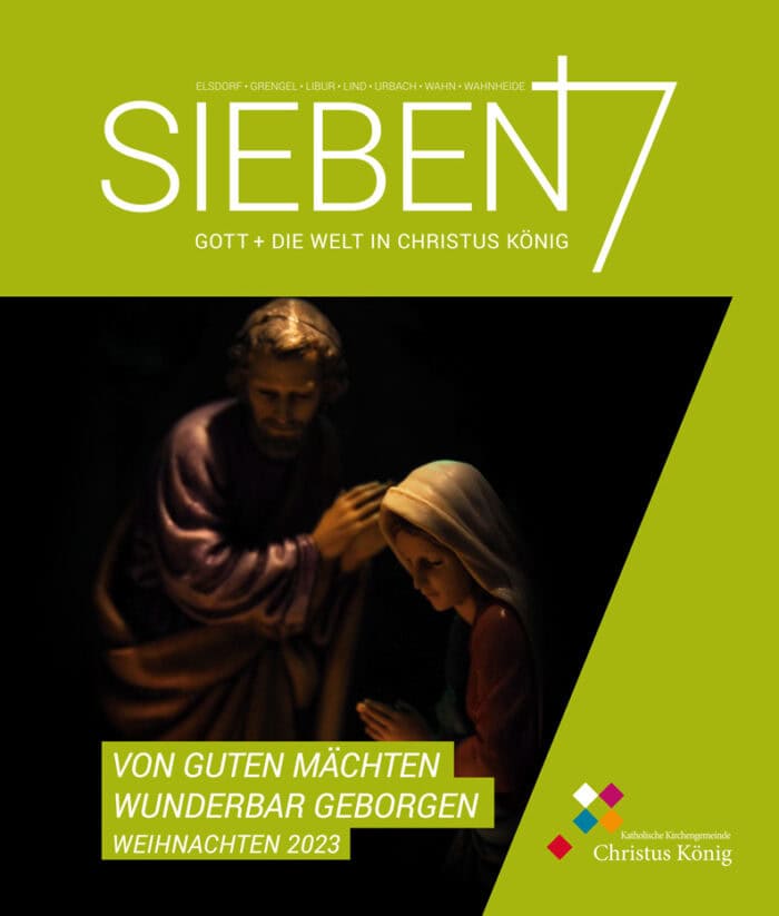 Unseren Pfarrbrief „7“ gibt es in dieser Form seit 2017. Der Titel weist u.a. auf „sieben“ als eine heilige Zahl in der Bibel hin. Wir zählen in unserer Kirchengemeinde sieben Ortsteile und (zusammen mit den evangelischen Kirchen) sieben Kirchen.